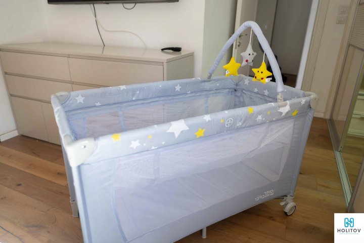 También hay una gran cuna plegable disponible en el apartamento y 2 platos (Halavi y Bassari)